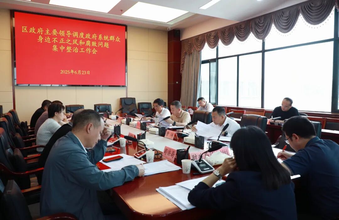 会议传达学习贯彻上级相关会议精神,听取全区政府系统群众身边不正之风和腐败问题集中整治工作情况汇报,重点围绕查摆问题清单和典型实事推荐清单进行深入分析和部署。