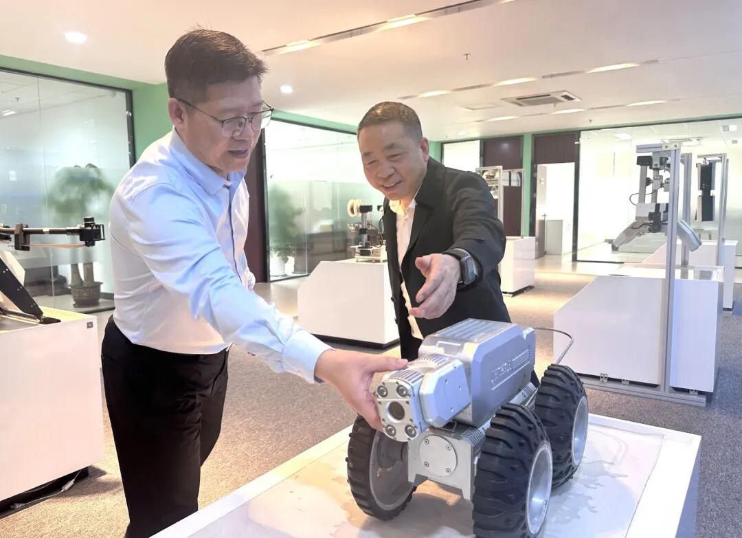 26日下午,秦永康一行前往广东科凯达智能机器人有限公司交流学习,在企业负责人的带领下参观了研发中心和制造中心,观摩架空线路巡检机器人运作,近距离感受机器人智能巡检过程,深入了解企业在发电侧、电网侧等业务的科研成果与产品。会上,双方就人工智能技术在消防巡逻、应急救援、地下管网管理等领域的应用需求进行了深入探讨,秦永康表示,希望以此次拜访为契机,与科凯达达成合作共识,共同拓宽智能技术在电网、综合管廊等领域的场景运用。