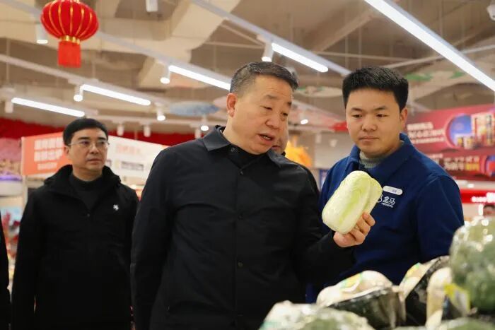随后,秦永康一行来到盒马鲜生观山湖万达广场店,详细询问商品供应、价格走势、食品安全及应急储备情况。他指出,春节保供事关民生,相关部门和企业要扛起主体责任,保障货源充足、丰富商品种类、稳定市场价格、严查哄抬物价行为,满足群众多样化消费需求。要加强部门协作,加大市场监管力度、严厉打击假冒伪劣行为,确保节日市场稳定有序。